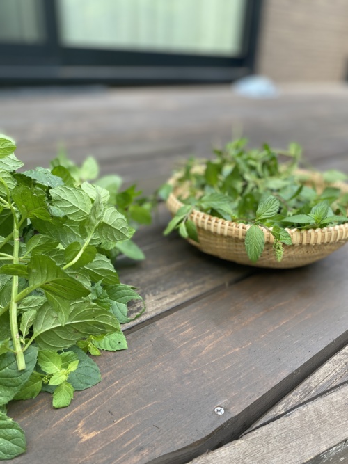 今年は初夏の頃に購入した薄荷も仲間入り。手で摘まむとさすがの清涼感。